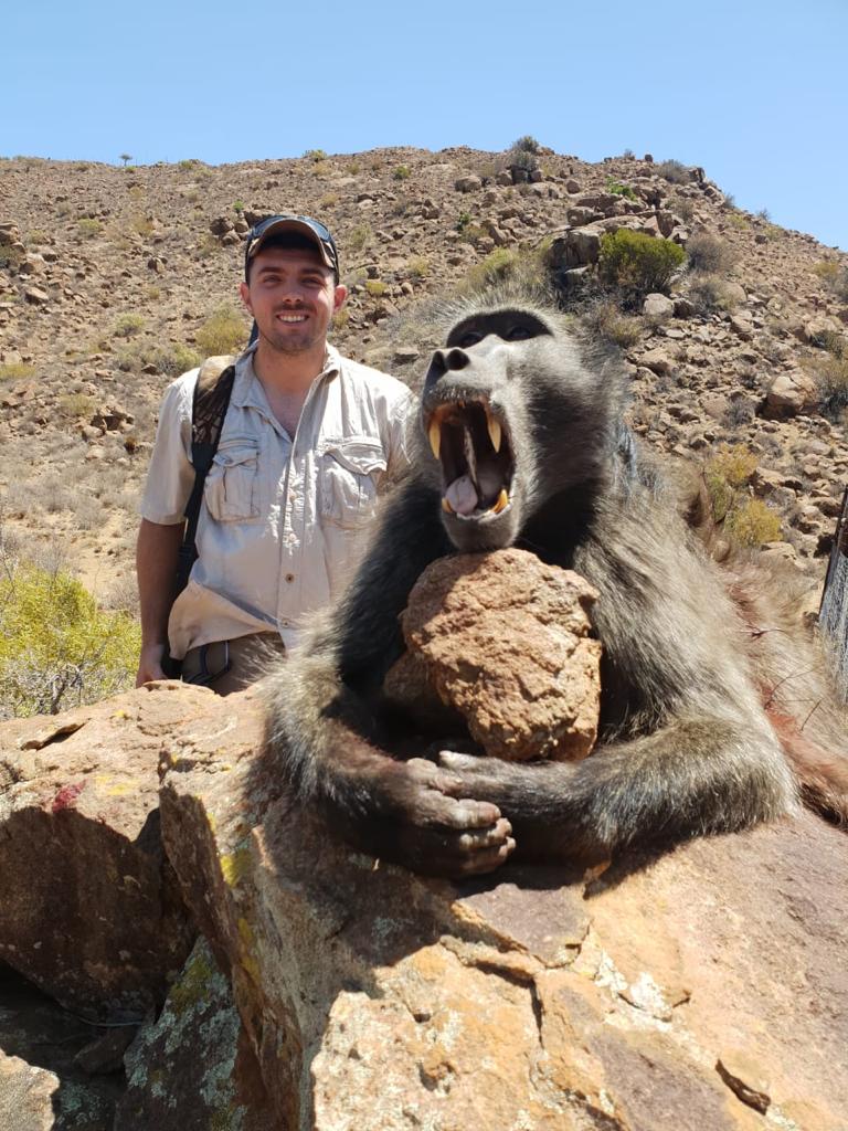 The largest member of the monkey family, they are a highly social species that live in groups of 10 to 200 individuals, depending on the availability of food. Men are physically larger than females and have long, razor-sharp canine teeth in addition to having a dark mane on their neck. Baboons are omnivorous, eating everything from roots to bulbs to wild fruits and seeds to leaves to flowers to insects to mice to birds to young antelope.