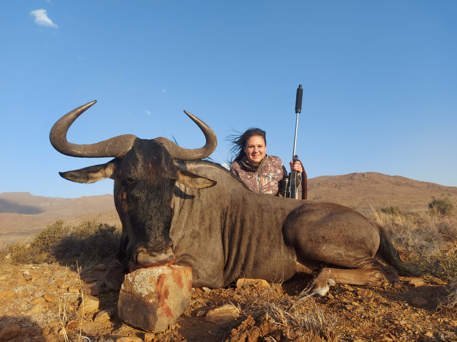 The Brindled Gnu, also referred to as the Blue Wildebeest, is bigger and heavier than the black Wildebeest. They are a dark silvery grey color with darker bands on their chests and necks. Because of a bluish sheen, they are nicknamed Blue Wildebeest. They have tails, beards, and long, dark manes. Both the male and female Blue Wildebeests have horns, albeit the cows’ horns weaker. similar to the horns of a buffalo, but considerably lighter in weight, the horns grow outward before curving abruptly up and then inside. Above the top of the head, the bases of the horns create a boss.